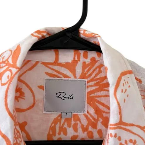 Size small Pit to pit: approx 20” Length: approx 25” Excellent condition The Charli Shirt is a breezy take on the classic button-down. Made of a lightweight linen blend, white serves as the background of an orange, hand-drawn fruit print. It's designed and tailored for refinement, but can serve both laid back and office casual styles. Fabric & Care: 55% Linen | 45% Rayon.