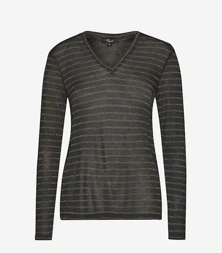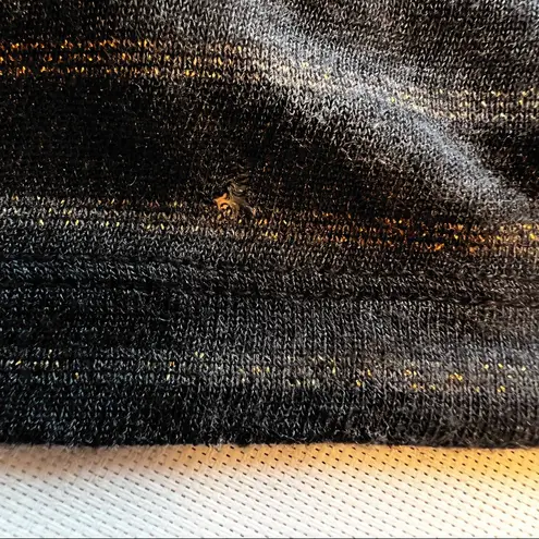 Size: L / Large Long Sleeves V-Neck Charcoal & Gold Lurex Metallic Lightweight Stretchy Fabric 97% Modal / 3% Metallic Hand-washable Great Condition! **1 small hole, see last picture Measurements Approx Laid Flat Armpit to Armpit 19” Shoulder to Bottom 26” R2349