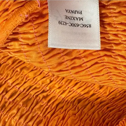 NWOT. Rails fitted Maxine top exhibits a square neckline and sleeveless silhouette. Size XS. Frill hem. Fabric is 95% Viscose and 5% Spandex. Color is listed as Papaya. Tag says dry clean. Shirt is new with a re-ticket store tag. Please see photos for details and measurements. **C-53