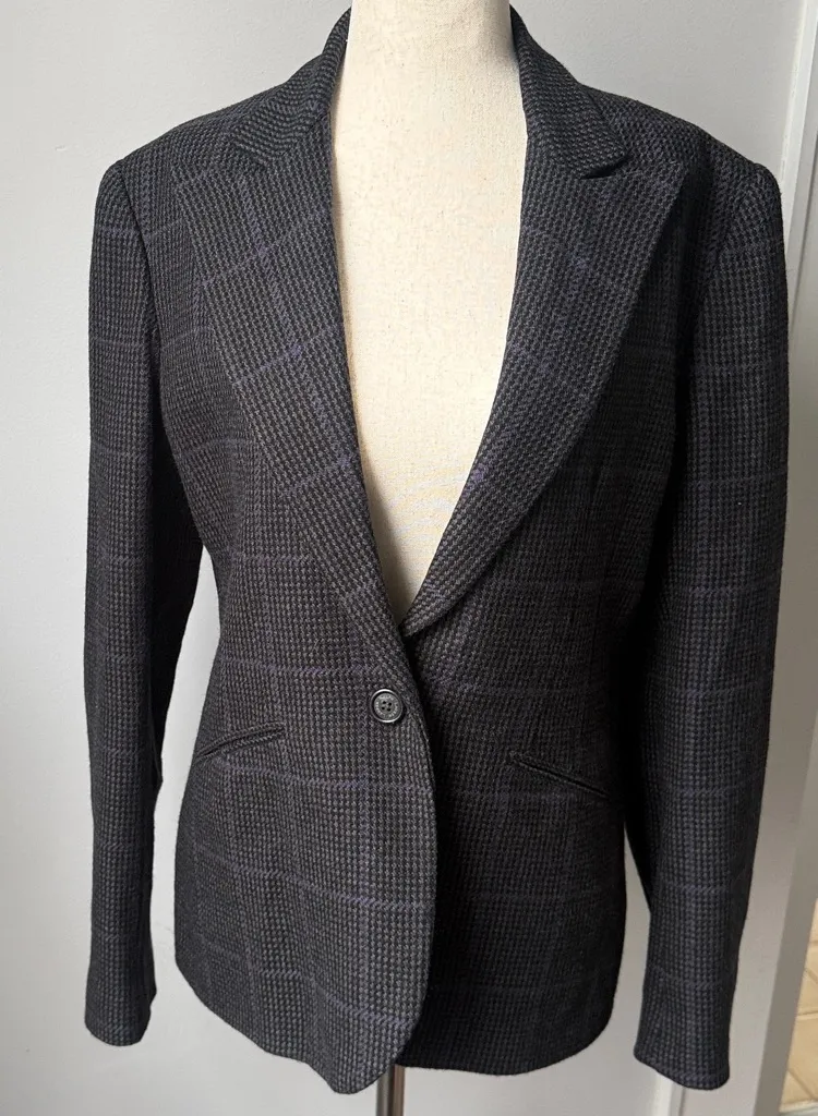 Ralph Lauren Black Checkered Blazer Size 10 Wool Classic Single Breasted Jacket Purple - $65 - From Carousel