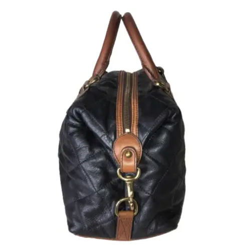 RALPH LAUREN Diamond Quilted Black Leather Boston Duffle Brown Rolleden Top Handle Bag RALPH LAUREN... Show more