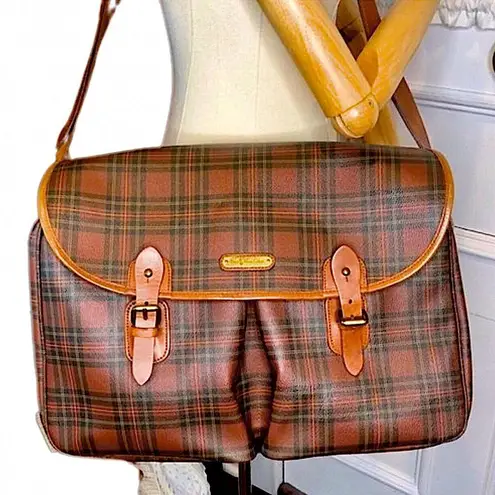 RALPH LAUREN Brown Green Tartan Plaid Crossbody Messenger Bag Vintage VINTAGE RALPH LAUREN Messeng... Show more