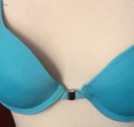 Turquoise padded push-up bra with lace racerback cheetah print design. Underwire. Front closure. Wor... Show more