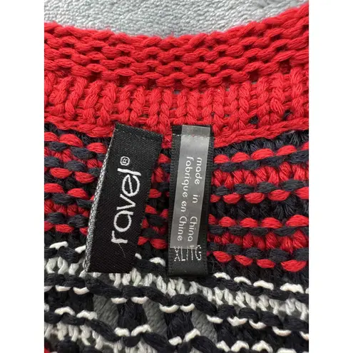 Ravel Black And White Longsleeve Striped Pattern Red Accents Knit Seeater XL/TG This Ravel knit swe... Show more