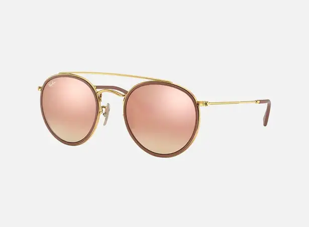 Ray-Ban Double Bridge Sunglasses - Worn one time at the beach - Copper Gradient Flash Lenses with Go... Show more