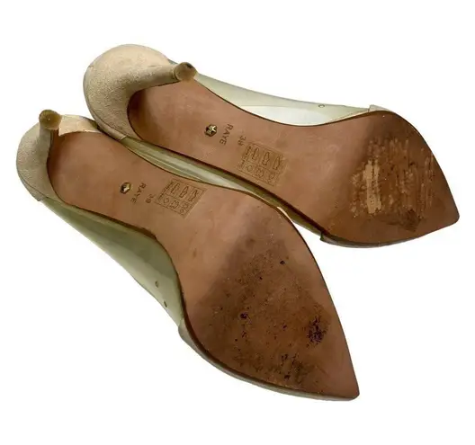 These Raye Revolve pumps combine sleek suede with transparent PVC panels and a sharp pointed toe, cr... Show more