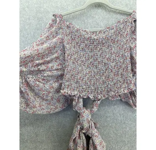Rebdolls Women's Wrap Blouse Puff Sleeve Smocked Plus Size 4X Cut off Floral Red - $25 New With Tags - From Plush