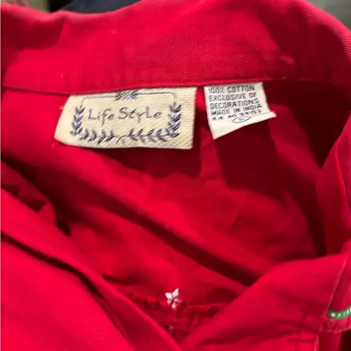 Red Denim Jacket Christmas Theme Stockings Womens large Trucker Casual - $25 - From Ashley