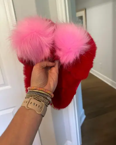 Red Fuzzy Slide Slippers - $34 - From Sloane