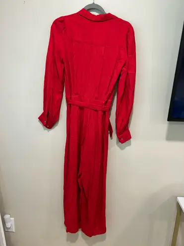 Red H&M jumpsuit. Size 4. Long sleeve and has a belt. Wide leg. Smoke free home.