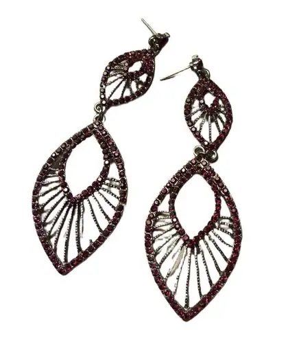 Red stone silver drop dangle style earrings post back (no backs) artsy formal - $10 - From Hannah