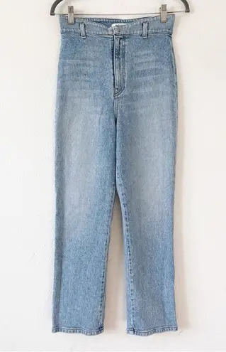 size 27. Straight leg, no pockets, high rise. Zipper and inside button closure. No sign of flaws not... Show more
