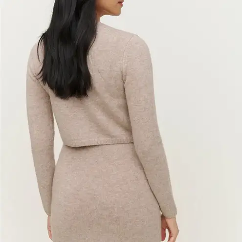Chic mini dress with matching button-up cardigan. Soft and stylish. Cashmere, in oatmeal color. In p... Show more