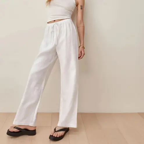 Effortless linen pants featuring a straight-leg silhouette, enclosed elastic waistband, and adjustable drawstring tie. Lightweight and breathable with a polished drape—perfect for travel, brunch, or relaxed warm-weather days.