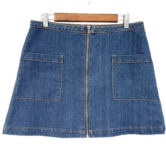 Refuge A-Line Denim Mini Skirt Womens Large Mod Retro Vibe Stretchy Go-Go Y2K -Condition: very good... Show more