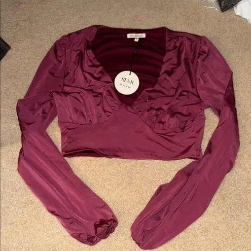 This stylish REVOLVE blouse features a vibrant red hue with elegant ruched detailing and puff sleeve... Show more