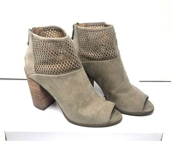 Open toed and with block heel, also zipper on back of shoe. Comes in original box. Shoe Size: 8 US. Heel Size: 4 in. taupe color Worn but still in good condition (check pics for wear please)