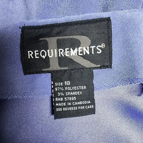 Requirements periwinkle maxi skirt with a zipper and slit in the back. Size: 18 Waist is approximately 36" Length is approximately 33.5" 97% Polyester 3% Spandex Machine washable Made in Cambodia