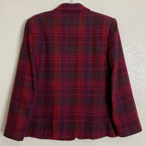 Size: 12 Color: Multicolor (Red, Maroon, Brown, Tan) - Front Full Zip Up clousure - Notch Collar - Long Sleeves - Two Front Pockets - Fully Lined - 40% Wool, 30% Acrylic, 25% Polyester, 5% Other - Dry Clean - Imported Gentle Used Excellent Pre-owned Condition Pet/Smoke free home Measurements Approx: Pit to pit: 21" Length: 27" Sleeves: 24" Tags: casual career business casual work office workwear officewear contemporary minimalist essential wardrobe events gatherings party