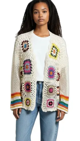 Retro Crochet Colorful Granny Square Patchwork Open Cardigan L Cream Loose Knit Pink Size L - $28 - From Christine