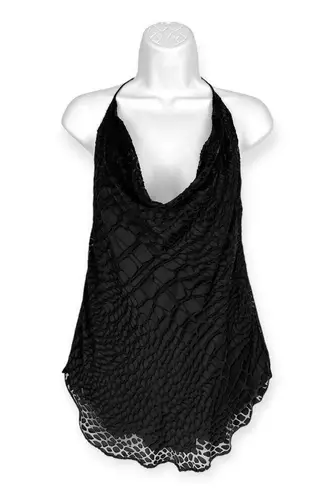 Embossed Alligator / Crocodile Burnout Texture Lined Draped neckline. Open back Neck tie closure. Se... Show more