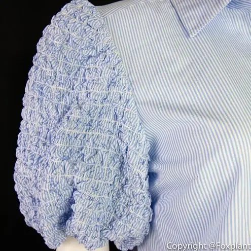 Petersyn smocked puff short sleeve button front top, white with stripes Color: Minii (Blue and whit... Show more