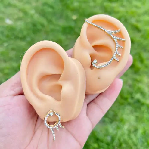 Rhinestones Gold Tone Mismatching Stud Ear Crawler Earrings - $8 New With Tags - From Jewelry