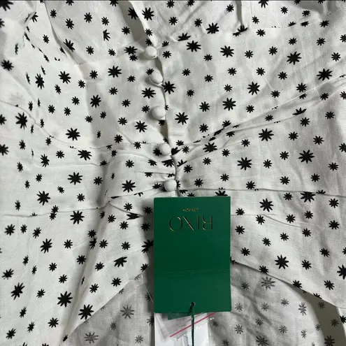 New with tags. Size large RIXO's Sameera top is a new spring favorite in a mini star-printed linen blend. With a sculpted sweetheart neckline and peplum hem, we recommend pairing this button front style with high-rise jeans. Fabric: 50% rayon, 50% linen Lining: 100% cotton