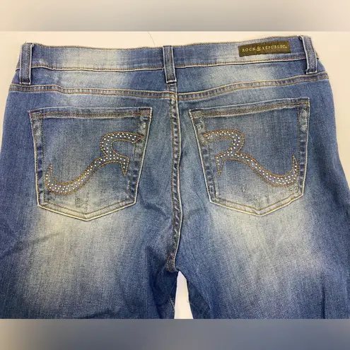Rock and republic Banshee Style Crop Sequin Butt Pockets Size 14 across top 16 across at seam 17.5... Show more