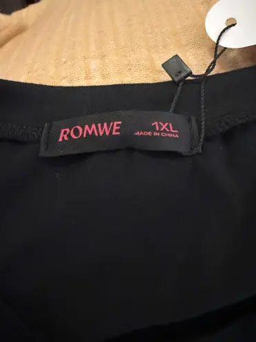 Stylish black t-shirt. Features a red ROMWE label. SIZE: 1XL PTP: 24 LENGTH: 26