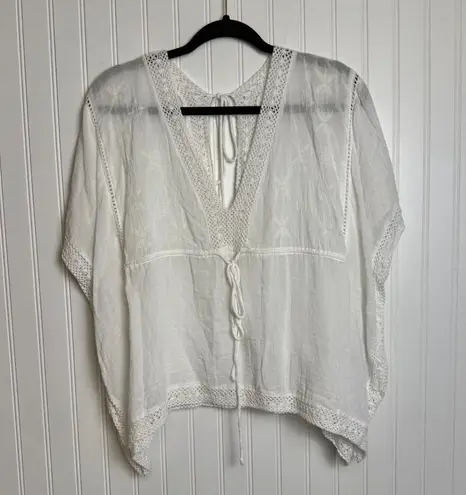Roper white V-neck crochet lace detail top drawstring size small I1 - $23 - From Rebekah