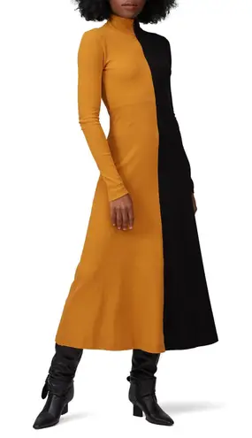 ROSETTA GETTY Black Tan Two Tone Cotton Jersey Colorblock Turtleneck Dress Size M Features: Brand... Show more