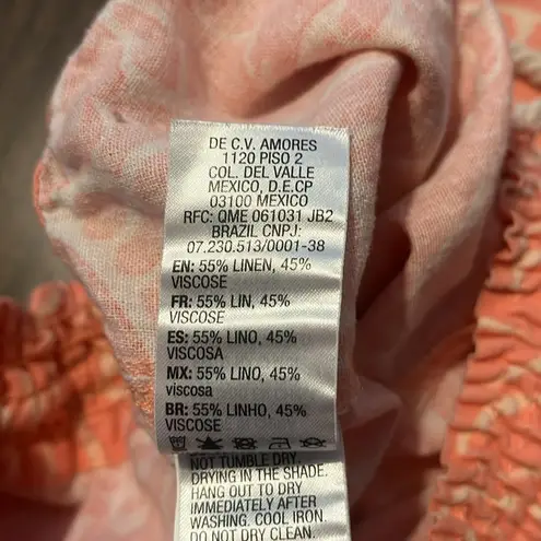 Coral peachy color with ivory tropical prints lightweight 4 pockets Drawstring waist Flare bot... Show more