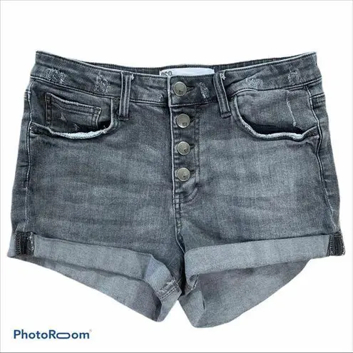 RSQ Tilly Gray Shorts Cuffed Exposed Button Up Distress Mid Rise Women's Size 27. Has functional fro... Show more
