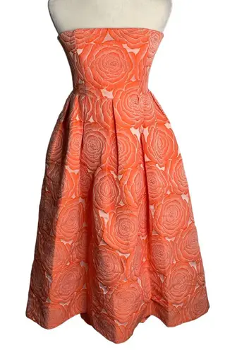 Rubber Ducky Floral Rose Ball Gown M Coral Orange Strapless High Low Zipper Size M - $125 - From Crystal