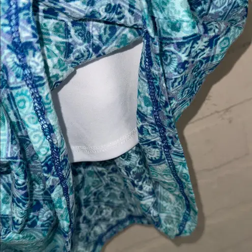 Ruby Rd blouse under shirt cami white tank attached semi sheer top tassel trim 1X NEW Super soft Cotton poly blend Blue green aqua Appprx 29” long, 26” pit to pit Amalfi coast