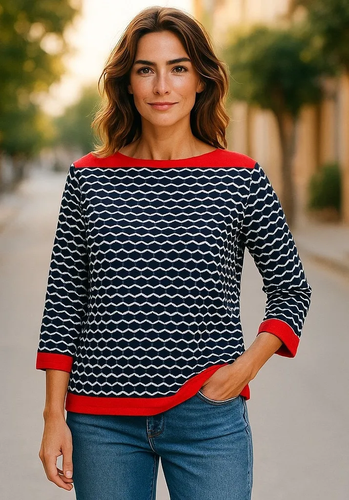 Ruby Rd. Womens Top Sz M Blue White Orange Red Nautical Look Knit GENERALLY SHIP SAME OR NEXT DAY F... Show more