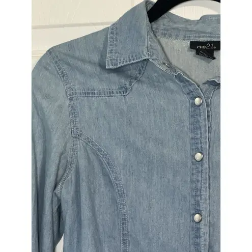 The Rue 21 Blue Denim Look 100% Cotton Button Up Long Sleeve Collared Shirt in size Medium is a styl... Show more