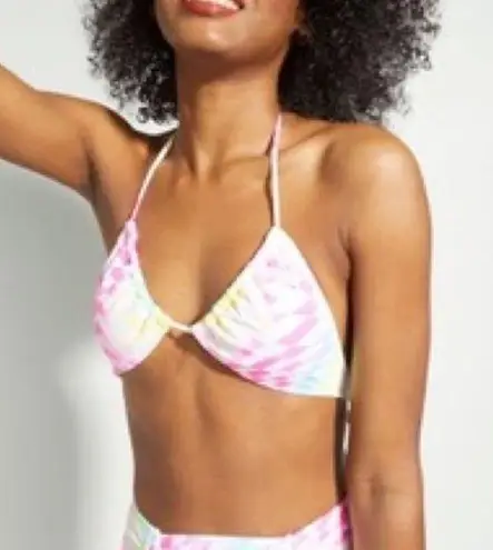 New with tags Catch this wave, bestie. Wavy neon checker print bikini top featuring self-tied halter... Show more