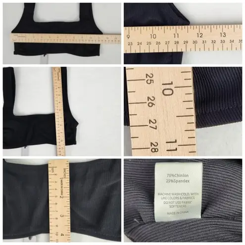 . This listing includes both the bralette and the shorts. CONDITION: New with Tags in original packaging. SIZE: Both the bralette and the shorts are size XS (X Small) COLOR: Black MEASUREMENTS (All are approximate, flat lay, and unstretched; see photos) Bralette: Chest (pit to pit): 11.5" Overall Body Length from high point of shoulder (front): 10.5" Shorts: Waist: 21" Inseam: 2.5" Overall Length, front: 13" MATERIAL: Bralette: 75% Chinlon, 25% Spandex Shorts: 75% Chinlon, 25% Spandex CARE: Machine washable. Feel free to ask questions or for more pictures.