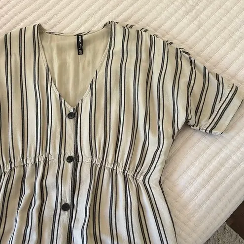 The perfect vacation dress from RVCA! Beautiful taupe color with black vertical stripes. Oversized f... Show more