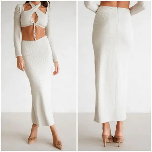 NWT SABO Maiden Textured Midi Skirt in Cream The 90's inspired Maiden Midi Skirt is made from a te... Show more
