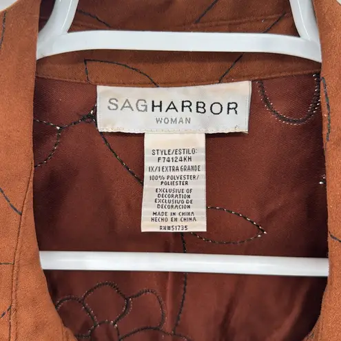 Sag Harbor Brown Floral Button front shirt jacket 1X faux suede eyelet plus fall - $17 - From Vanessa