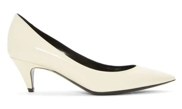 Saint Laurent "Charlotte 55" Good/excellent preowned condition, general light wear (please see all photos) *minor discolorations on the patent (see pics 6, 8 & 9) no box/dust bag women's size EU 37.5 RETAIL: $795 neutral ivory cream color 100% leather construction glossy patent upper classic slip-on pointed toe pumps low comfort walkable kitten heel minimalist elegant design made in Italy *approx* just over 2.25" heel height (see measurement pic for exact) DBOGA designer luxe luxury glam glamorous cocktail party formal event special occasion going out date night bachelorette wedding guest evening black tie elevated effortless preppy classy dressy-casual closet staple modern contemporary mature modest comfy comfortable retro mod pinup vintage quiet 40s 50s 60s 70s 80s 90s y2k 2000s pinup coquette feminine dainty delicate capsule wardrobe career business office work workwear professional sexy ecru shoes blogger favorite fashion house authentic genuine reseller christian louboutin CL dior lv louis vuitton ysl yves opyum cassandre cassandra chanel gucci jean paul gaultier roger vivier chloe giuseppe zanotti jimmy choo fendi balenciaga bottega veneta dolce & gabbana burberry prada versace balmain valentino hermes gianvito rossi sergio alexander wang mcqueen casadei rene caovilla sophia webster roberto cavalli giorgio armani tom ford stuart weitzman off-white loewe miu miu marc jacobs tamara mellon ralph lauren celine zara nordstrom