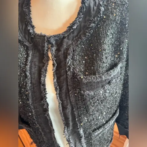This Saks Fifth Avenue collarless blazer showcases a refined tweed construction, enhanced by distinc... Show more