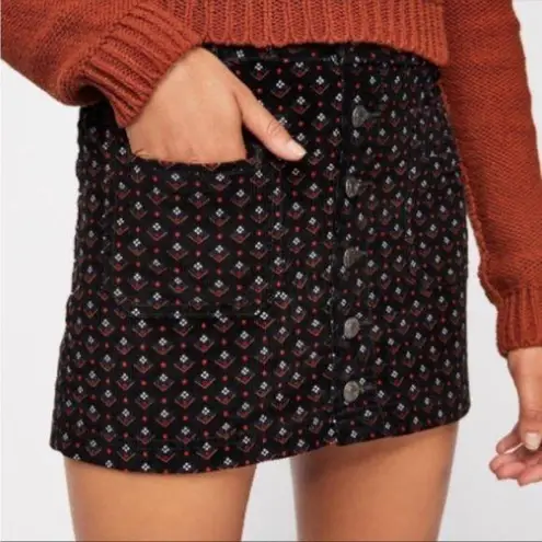 WE THE FREE JOANIE CORDUROY RED WHITE BLUE PRINT FEONT BUTTON MINISKIRT Belt loops Size 26 Approx... Show more