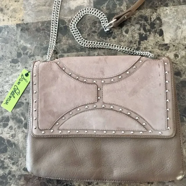Sam Edelman Riveted Crossbody “Maddie” in Leather and suede. Includes 2 inside pockets, 1 inside zip... Show more