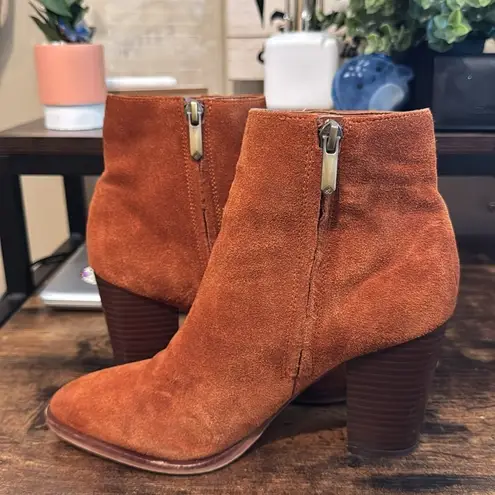 Sam Edelman Rust Brownieh Orange Booties size 7 GUC price stickers still on bottom Side zip