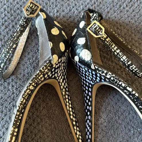 ▸ BRAND: Sam Edelman ▸ STYLE: Ankle Strap Stiletto Sandals ▸ SIZE: 10 ▸ COLOR: Black and... Show more