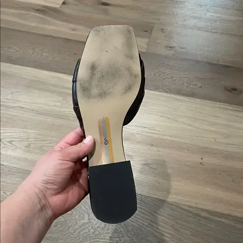 • Squared open toe • Slip on • 1.25" heel • Leather upper, manmade lining and sole • Imported Excel... Show more